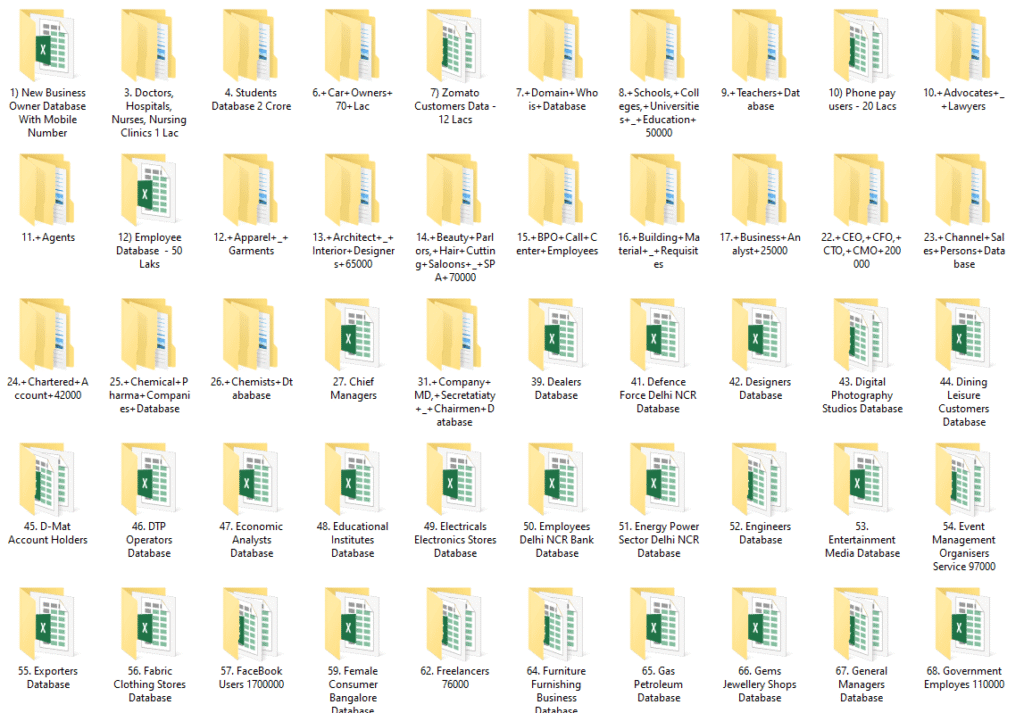 Absolutely thrilled with the All India Latest Updated Database 2025! This comprehensive Excel database is a game-changer for targeted marketing, packed with accurate, duplicate-free contacts across B2B, B2C, and niche categories like HNI leads, doctors, and real estate professionals.